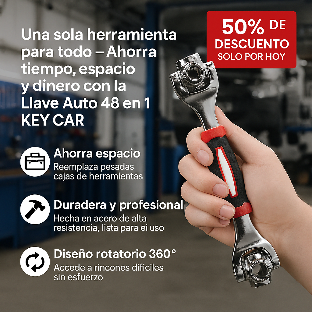 ✅ Una sola herramienta para todo ✅ Ahorro de tiempo con acceso instantáneo a 48 tamaños ✅ Cabezal 360°: trabaja en cualquier ángulo ✅ Acero de alta resistencia, hecha para durar